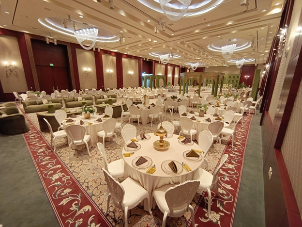 Lancaster Burj Al Hayat offers an exceptional setting for weddings, conferences, and large-scale events, combining grandeur, elegance, and flawless service. The hotel features a magnificent Grand Ballroom that can be divided into two separate sections, accommodating more than 1,000 guests in theatrical style. Perfect for glamorous weddings, prestigious conferences, or high-profile ceremonies, the ballroom is adorned with stunning luxury chandeliers, a built-in projection screen, and a private entrance for exclusive and seamless arrivals.